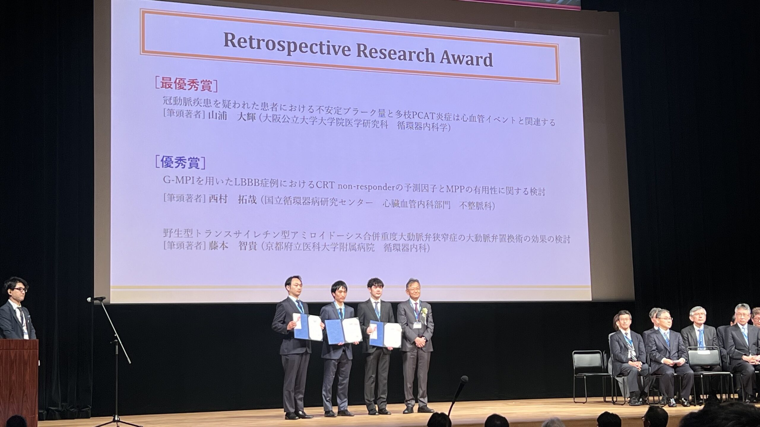 当教室 山浦大輝大学院生が、第73回日本心臓病学会学術集会、Retrospective Research Awardにて、最優秀賞を受賞いたしました。 演題名: 冠動脈疾患を疑われた患者における不安定プラーク量と多枝PCAT炎症は心血管イベントと関連する 山浦先生、誠におめでとうございます!!