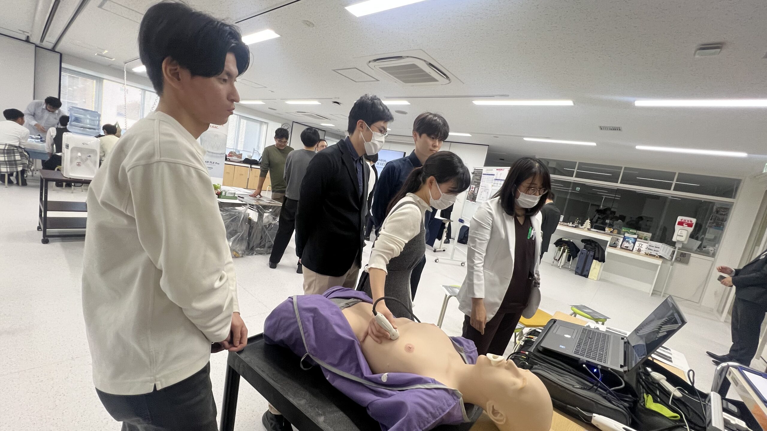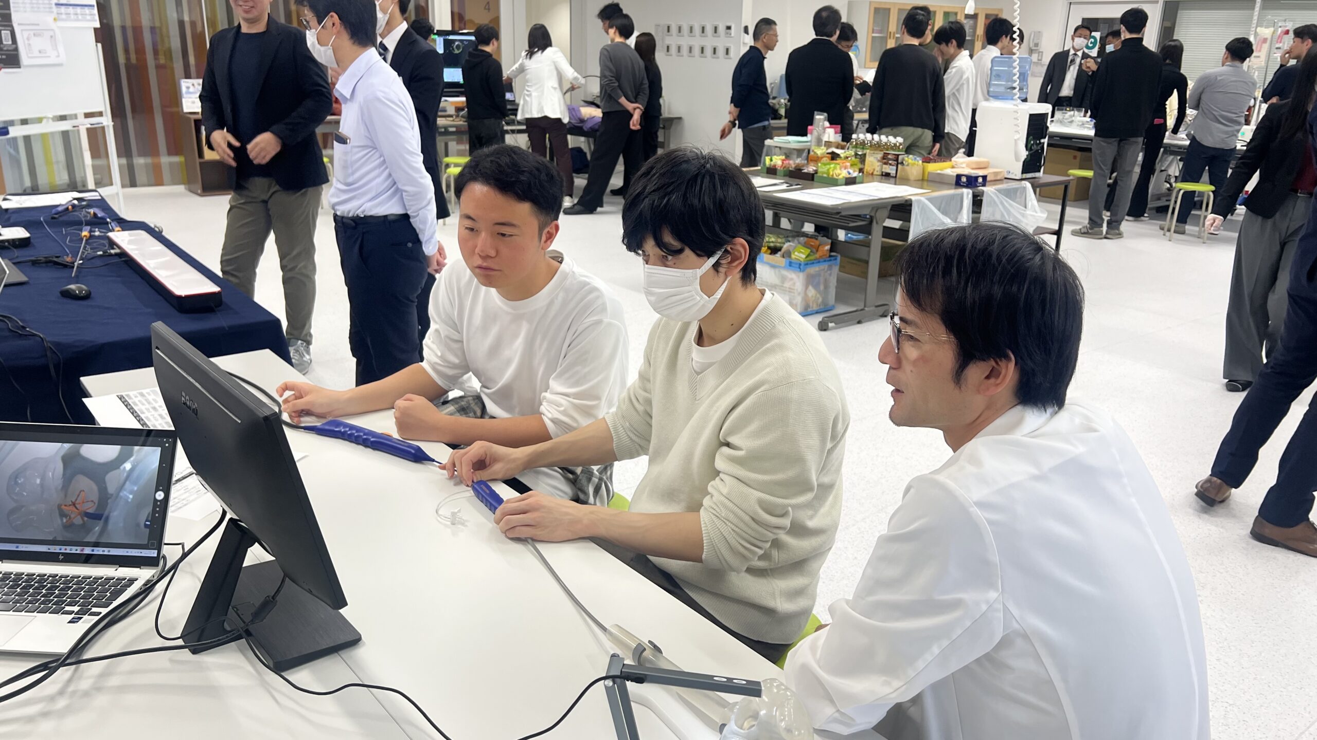 各ブースでは、大阪公立大学のスタッフ、関連病院の先生方が講師となり、治療や検査の様々な機器を、シミュレータで実際に触ってもらいました。