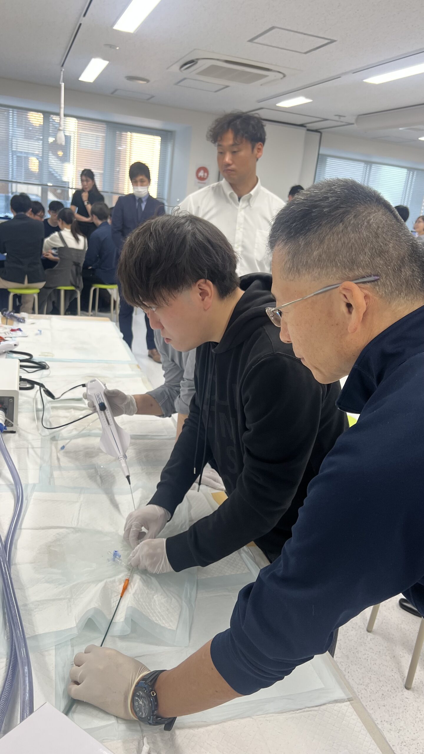 エコーやカテーテル治療時のワイヤー操作だけでなく、ロータブレーターやアブレーション、Watchmanなど先進的な機器の体験もしてもらう事が出来、進歩し続ける循環器診療を少しでも感じてもらえたのではと思います。